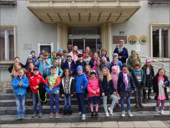 Heute besuchten die Kinder der 2a und 2b das Rathaus der Stadtgemeinde. Wir bekamen eine Führung durch das Haus und lernten einige Mitarbeiterinnen und Mitarbeiter kennen. Sie erzählten uns, welche Aufgaben sie in der Gemeinde haben und wofür die Stadtgemeinde verantwortlich ist. Wir waren in der Bürgerservicestelle, dem Bauamt und dem Standesamt. Wir durften sogar die dicken alten Bücher mit handschriftlichen Aufzeichnungen sehen. Anschließend besuchten wir noch das Büro der Amtsleiterin und des Bürgermeisters. Im Sitzungssaal fand gerade der Deutschunterricht von einigen Asylwerbern statt. Wir durften ihre arabische Handschrift kennenlernen und zeigten ihnen unsere Schreibschrift. Auch für kleine Gespräche war genügend Zeit. Einige Kinder waren so aufmerksam, dass sie das Wappen und das Logo von Neusiedl am See im Rathaus entdeckten. Ein herzlicher Dank an alle Gemeindebediensteten, die sich Zeit für uns genommen haben.