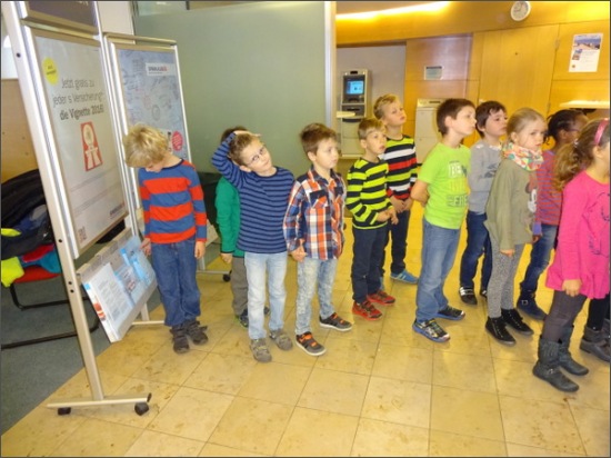 Am 30.10.2015 ist Weltspartag. Die Kinder der 1a und 1b besuchten heute die Filiale der Sparkasse in Neusiedl am See. Dort erklärten ihnen die Mitarbeiterinnen und Mitarbeiter ihre Tätigkeiten. Die Schülerinnen und Schüler sahen, wie ein Münzzählautomat funktioniert und woran man echtes Geld erkennt. Interessant war auch die Besichtigung des Tresors.