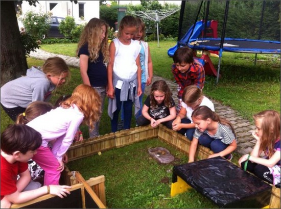 Am Freitag, 10.06.2016, waren die Schülerinnen und Schüler der 2a Klasse bei Paulina Hess eingeladen, ihre jungen Schildkröten zu besuchen. Das große Gehege und die kleinen Tiere faszinierten die Kinder. Frau Hess verwöhnte alle mit Butterbroten, Gemüse, Nascherei und selbst gemachtem Himbeereis. Nachdem die Kinder im Garten ausgiebig spielen durften, kehrten sie in die  Schule zurück.