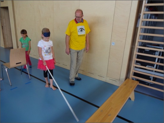 Im Zuge des Projektes "gesunde Schule" hatten heute die 2. Klassen einen Workshop mit sehbehinderten Personen. Sie lernten das Leben von Sehbehinderten bzw. blinden Menschen kennen. Außerdem wurden sie auf Probleme aufmerksam gemacht, die auf einen bei einer Sehbehinderung zukommen. An Stationen konnten sie Hilfsmittel für blinde Menschen kennenlernen und ausprobieren. Außerdem versuchten die Kinder mit Brillen, die Sehbehinderungen simulieren, einen Parcours zu gehen.