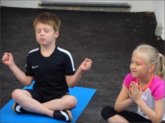 Im Zuge des Projektes "gesunde Schule" hatten heute die 1a und 1b die Yogatrainerin, Frau Skudnigg zu Besuch. Bei herrlichem Sonnenschein machten die Schülerinnen und Schüler mit der Trainerin Kinderyoga auf Matten im Schulhof. Es war eine tolle Erfahrung für unsere Erstklässler.