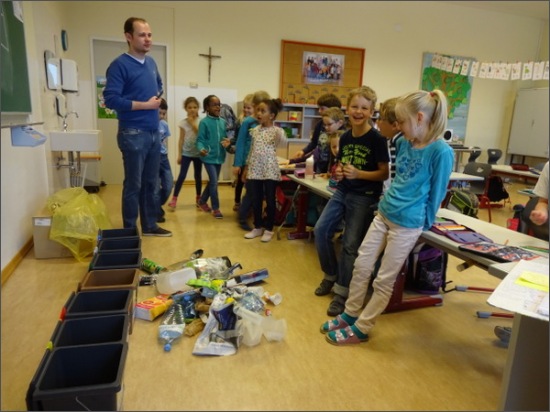 Mit dem heutigen Besuch von Christian Strommer vom BMV in der 1a und 1b endete unsere Müllworkshopreihe. Die Kinder waren mit Begeisterung bei der Sache und lernten eifrig den Unterschied der verschiedenen Müllarten und die richtige Trennart.