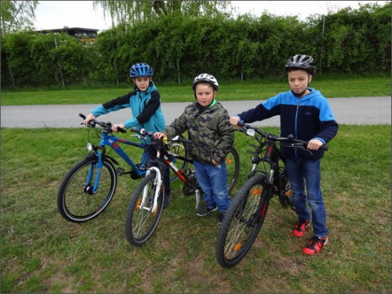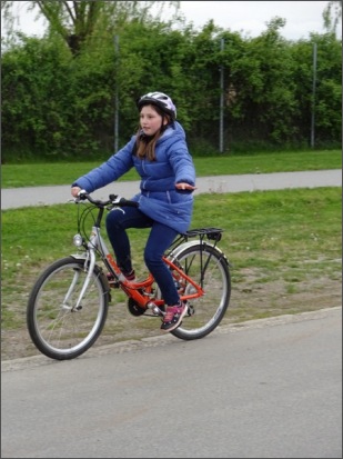 Die Kinder der 4a und 4b machten sich heute mt ihren Fahrrädern auf in Richtung Hallenbad. Mit 2 Polizeibeamten übten sie dort das richtige Verhalten mit dem Fahrrad im Straßenverkehr. Sie bereiteten sich so auf die Radfahrprüfung vor. Die Beamten kontrollierten auch die Verkehrstauglichkeit der Fahrräder und erklärten die Abbiegemanöver.