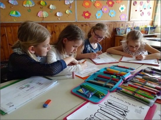 Vergangene Woche drehte sich in den 2. Klassen alles rund um das Buch. In einem Stationsbetrieb erfuhren die Kinder vieles über Berufe rund um das Buch und die Teile eines Buches. Wir beschäftigten uns mit den Wortarten, lösten Rätsel und übten das Lesen von Büchereiöffnungszeiten. Außerdem beschäftigten wir uns mit der Entstehung eines Buches und jedes Kind durfte sein Lieblingsbuch vorstellen. In diesen durften im Rahmen einer „Buchausstellung" die anderen Kinder schmökern. Wir bastelten einen Büchertausendfüßler uns stellten unsere Zeichnungen mit dem Thema „Ich lese ein Buch" aus. Einige Kinder schrieben sogar selbst ein Buch. Diese Woche war sehr abwechslungsreich und hat uns wieder zum Lesen motiviert.