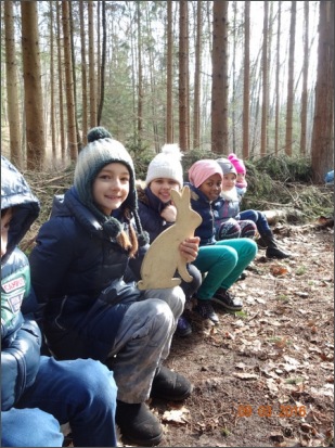 Die Kinder der dritten Klassen besuchten die Werkstatt Natur in Marz. Nachdem sie in Gruppen geteilt waren, machten sie sich mit den Waldpädagogen auf, die Gegend zu erkunden. Nicht nur am Gelände der Werkstatt Natur, sondern auch im angrenzenden Wald erkannten sie viele Zeichen der Natur, die zu dieser Zeit bereits munter wird. In der Jagdhütte erzählte die Waldpädagogin viel über die unterschiedlichen Tiere.