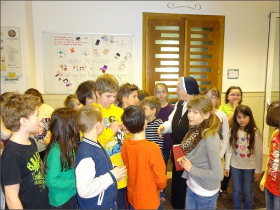 Heute machte sich die 3b mit Schwester Thekla auf die Reise in die Vergangenheit der Klosterschule in Neusiedl am See. Anhand von Bildern und fotos erklärte Schwester Thekla den Kindern die Geschichte der Schule. Danach begaben sie sich auf einen Rundgang durch das Haus und erkundeten die Veränderungen zu früher.