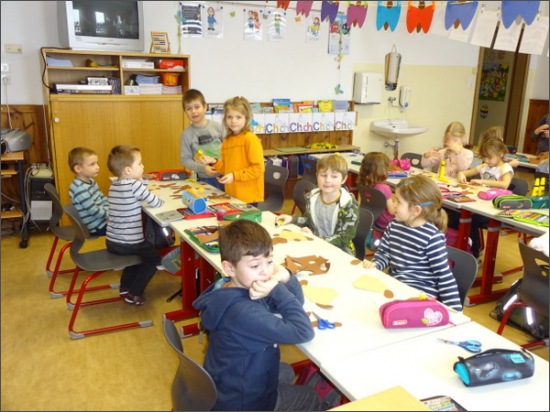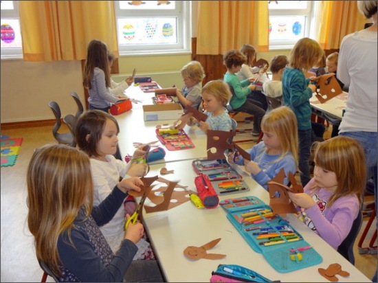 Heute kamen Kinder des Kindergarten Gartenweg zu Besuch in die 1a und 1b. Die Begrüßung fand mit einer Geschichte und einem Lied statt. Im Anschluss wurden Dreierteams gebildet. Jedes Kind aus dem Kindergarten erhielt 2 Erstklässer zur Seite gestellt. Gemeinsam wurde sehr eifrig gearbeitet. Aus Papier wurde ein Osterhase hergestellt, den sich jedes Kindergartenkind mit nach Hause nehmen durfte. Zum Abschluss sangen alle gemeinsam noch einmal das tolle Lied.