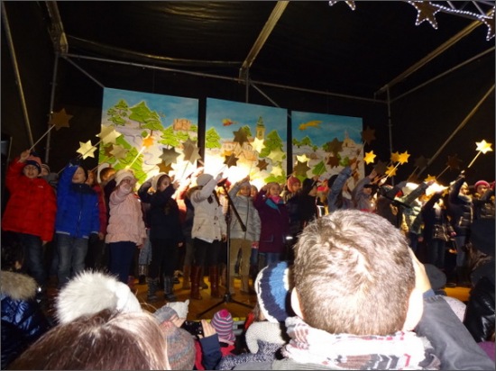 Am Freitagabend waren die Mädchen und Buben der 3a und 3b zu Gast beim Adventdorf in Neusiedl am See. Auf der großen Bühne präsentierten sie ihr Stück "Das Geschenk des Himmels". Viele Besucher lauschten begeistert den Liedern und Texten. Mit großem Applaus wurden die Kinder in das verdiente Wochenende verabschiedet.