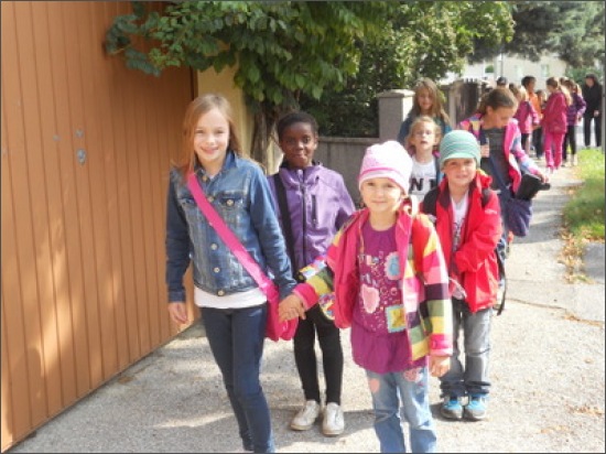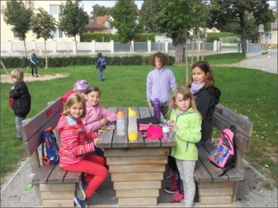 Unsere Partnerklassen (1a, 1b, 4a und 4b) unternahmen heute einen Ausflug. Gemeinsam wanderten sie nach der großen Pause zum Kalvarienberg. Nach dem Erklimmen der Höhe machtensie zuerst Rast und aßen die Jause. Anschließend wurden Kastanien gesammelt. Nach 2 erfahrungsreichen Stunden, die die soziale Arbeit unserer Schule unterstrichen, begaben sich die Kinder mit ihren Lehrerinnen wieder auf den Rückweg zum Kloster.