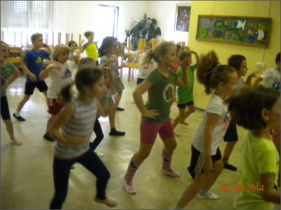 Großen Spaß bereitete den Kindern die Schnupperstunde der Tanzschule PERO. Jede Klasse durfte mit den beiden Tanzlehrerinnen gemeinsam verschiedene Tanzschritte trainieren und sich zur coolen Musik bewegen.