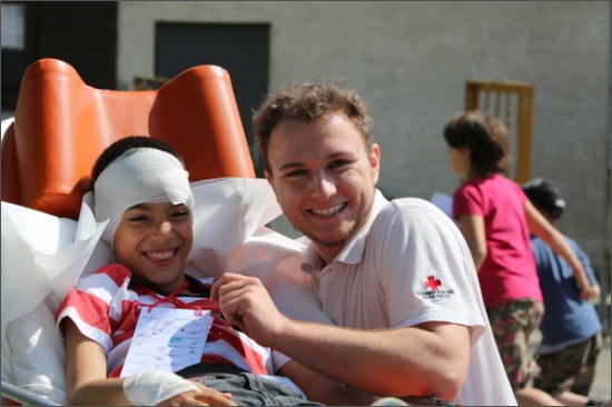 Zum Abschluss zeigte uns das Pferd „Chilli“ noch ein Kunststück und legte sich vor allen Kindern nieder. Mit einem gemeinsamen Foto verabschiedeten sich alle von den Pferden und Fam. Sattler. Zur Stärkung für den langen Heimweg gab es Äpfel und Karotten!