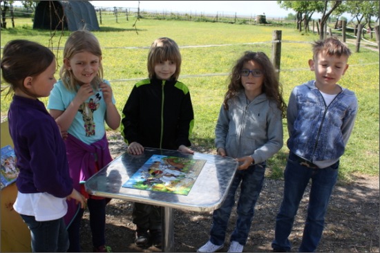 Damit auch das Schreiben nicht zu kurz kam, wurde auf der Ranch das „Pf pf“ auch auf einem Arbeitsblatt geübt. Dass man „Pfui“ auch mit „Pf“ schreibt, erfuhren die Kinder bei den Pferdeäpfeln und am Misthaufen!