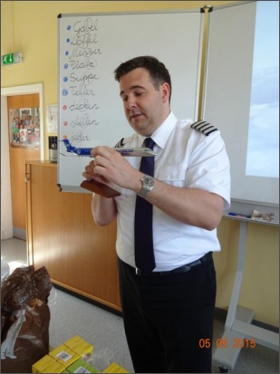 Die 2a erhielt heute wieder Besuch. Die Vorstellung von Berufen der Eltern in der Klasse ging weiter. Herr Mallaun stellte den Beruf des Piloten vor und Frau Almhofer die Arbeit einer Flugbegleiterin. Mit dem Beamer bekamen die Kinder einen Film zum Betrieb im Flugzeug präsentiert.