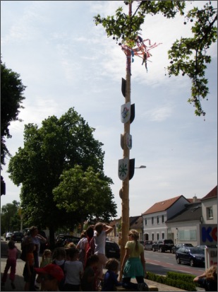 Nachdem die 1.Klassen im Unterricht Bräuche rund um den 1. Mai kennengelernt hatten, machten sie sich gemeinsam auf die Suche nach einem Maibaum.