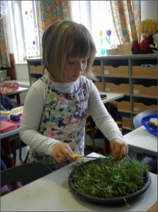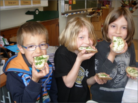 Im Zuge des Sachunterrichtsthemas "Im Garten" haben sich die Kinder der 1a und 1b über eine Woche lang mit Tieren und Pflanzen im Frühlingsgarten beschäftigt. Deshalb wurde in der Klasse auch Kresse gesäht, gepflegt und nach einer Woche auch geerntet. Bei der abschließenden Verkostung der Kresse mit Butterbroten schmeckte es allen sehr gut!