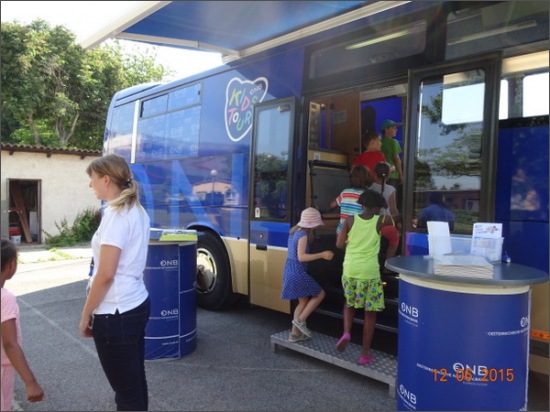 Der Euro-Bus ist im Rahmen der Euro-Kids-Tour in ganz Österreich unterwegs, um Volksschulkinder über die Funktionen des Geldes sowie über die Sicherheitsmerkmale der Euro-Banknoten zu informieren.