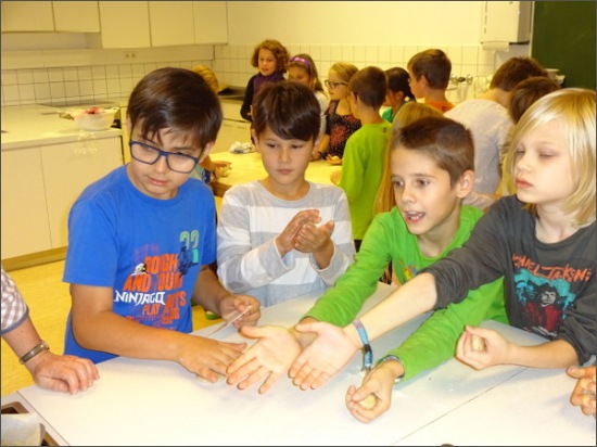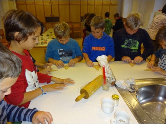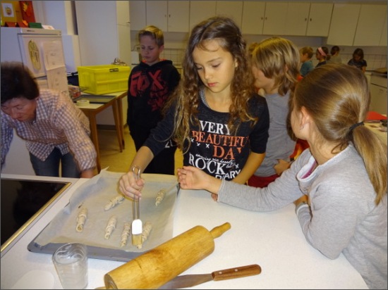 Mit der Seminarbäuerin lernten die 4a und 4b, welchen Weg das Korn durchläuft, bis es zuhause als Brot ankommt. Im praktischen Teildes Unterrichts waren die Kinder in unserer Lehrküche und machten selber ihr Gebäck, das im Anschluss mit Genuss verkostet wurde.