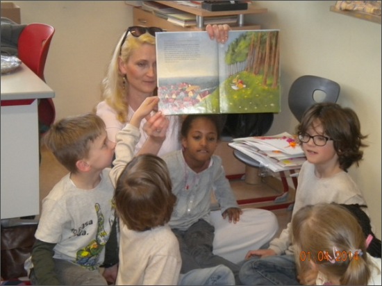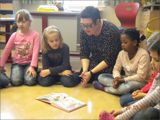 In der 1. Klasse wird im Bereich Lesen fleißig gearbeitet. Während der Fastenzeit kommen immer wieder Eltern oder Großeltern in die Klasse und lesen den Schülerinnen und Schülern Geschichten vor und besprechen diese. Gerne wird auch die eine oder andere mitgebrachte Köstlichkeit im Anschluss verkostet.