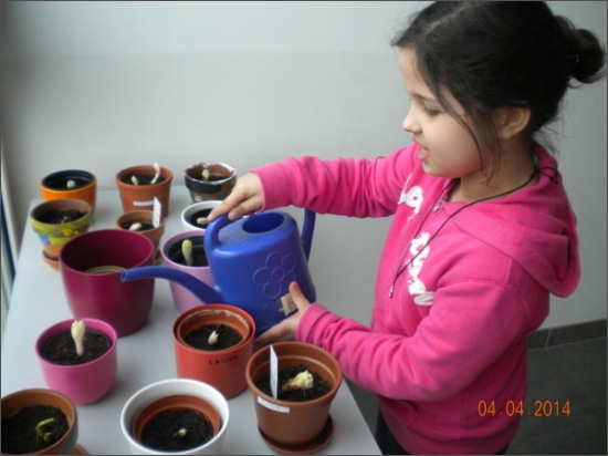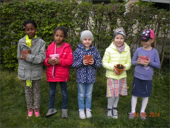 Am Freitag zog wieder ein Stück mehr Frühling ins Kloster ein. Die Kinder der 1a und 1b setzten Lilien und Dahlien in ihre Blumentöpfe. Diese stellten sie an einem sonnigen Platz in der Schule auf. Danach mussten die jungen Pflänzchen noch kräftig gegossen werden.
