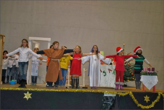 Bereits traditionell gestalten die Schülerinnen und Schüler der Röm. kath. Volksschule die Seniorenweihnachtsfeier der Stadtgemeinde Neusiedl am See. Heuer fand die Veranstaltung im Turnsaal der NMS Neusiedl am See statt. Um die anwesenden Gäste auf Weihnachten einzustimmen, haben die Kinder der 3a und 3b eine moderne Auflage der Herbergssuche einstudiert. Auf der wunderbar dekorierten Bühne spielten, sangen und musizierten 46 Mädchen und Burschendas Stück. Am Schluss sangen alle Anwesenden die mitgebrachten Lieder mit den Schülern und Schülerinnen.