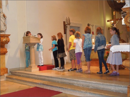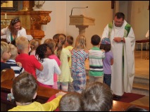 Mit dem Stadtpfarrer, dem Kantor, den SchülerInnen mit ihren Lehrerinnen, mit einigen Eltern und Großeltern feierten wir den Eröffnungsgottesdienst in der Pfarrkirche.