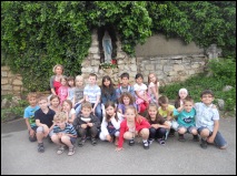 Im Kloster haben sich die Erstkommunikaten versammelt,