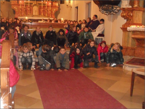 Der Stadtpfarrer, die SchülerInnen der Volksschule