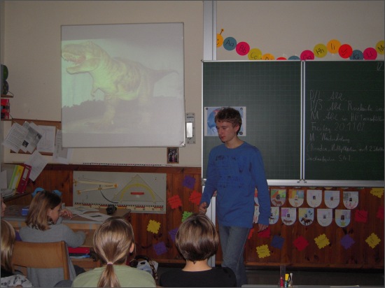 mit seiner Power-Point-Präsentation die SchülerInnen