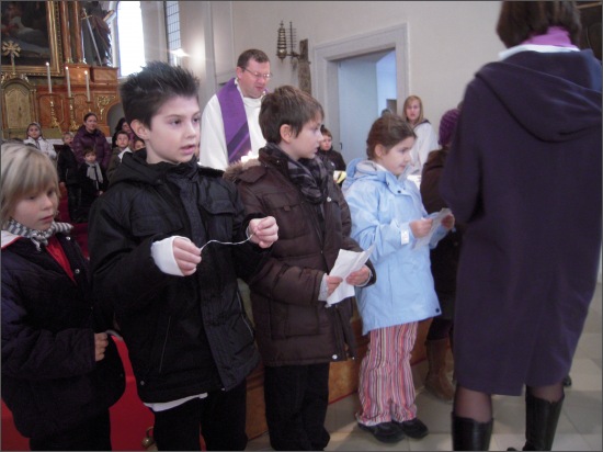 beim Gottesdienst die Kinder vorgestellt,
