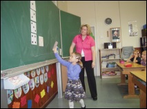 mit ihrer Klassenlehrerin das Gemeindeamt.