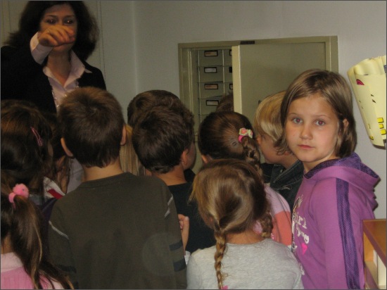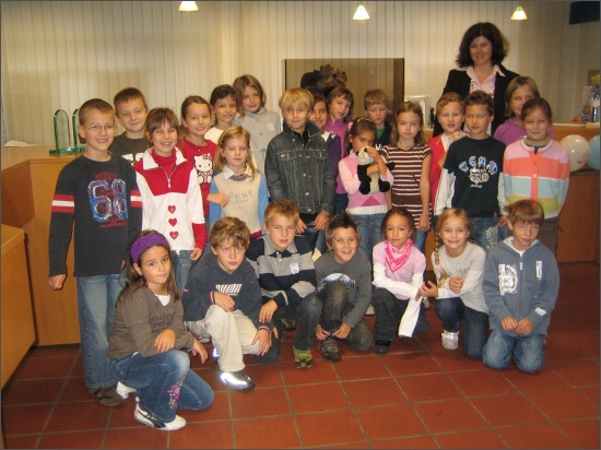 Die SchülerInnen der 1. und 2. Klasse besuchten die Volksbank.