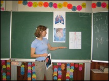 Mit spannenden Informationen über den Körper, selbständigem Tun an mitgebrachten Materalien und einem Rätselquiz mit Gewinngeschenken fesselte sie die Zuhörerinnen.