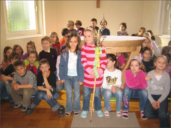 Kreuzwegandacht der SchülerInnen der Volksschule in der Hauskapelle.