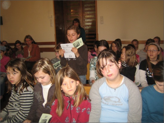 Die Texte wurden von den Mädchen der 4. VS vorgelesen und alle sangen zwischen den einzelnen Stationen die gut bekannten Lieder mit.