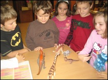 Sofort entstanden  Expertengespräche über die verschiedensten Arten von Saurier. Die mitgebrachten Bücher dienten zum Nachschlagen bei Unsicherheiten. Es war sehr interssant!