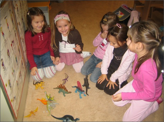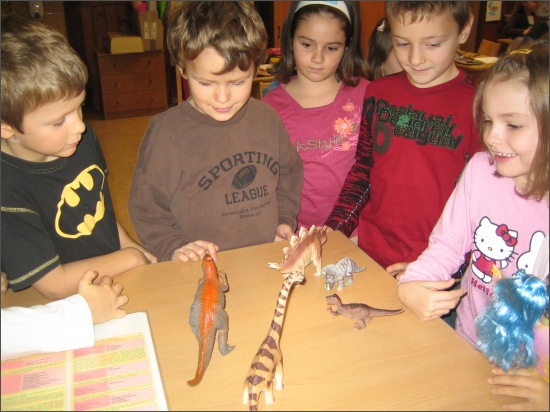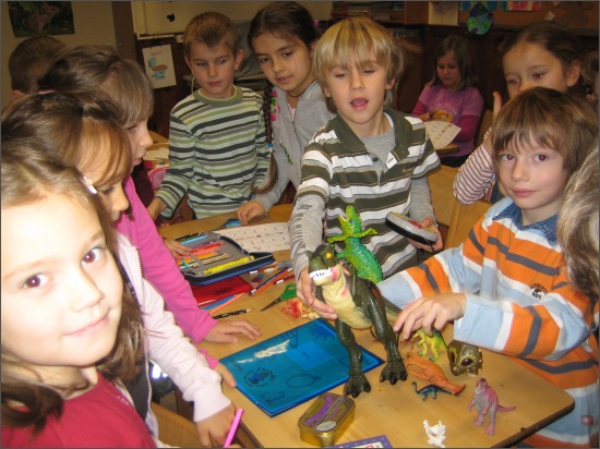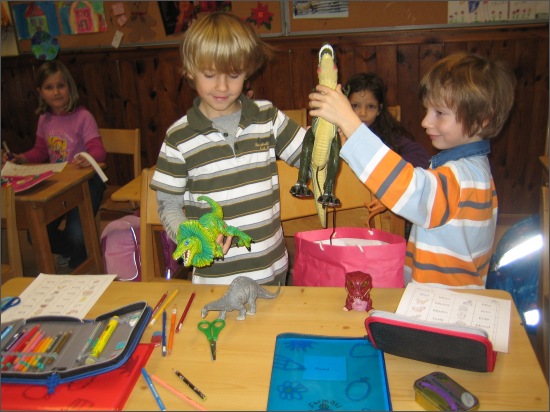 Um uns den Buchstaben D dgut zu merken brachten die SchülerInnen Dinosaurier mit in die Schule.