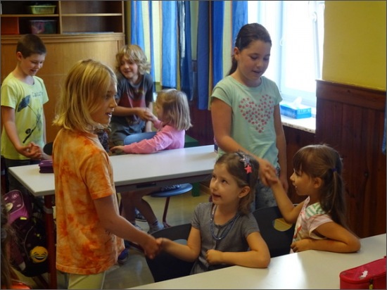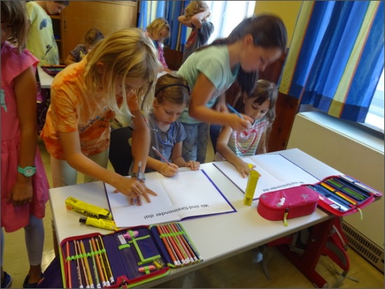 Die Kinder der 1a, 1b, 3a und 3b hatten heute ein erstes Kennenlernen, bei dem sie miteinander sangen und einen "Partnervertrag" verfassten.