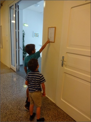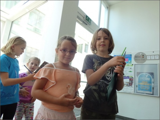 Dabei mussten sie den Weg in den Schulgarten finden, den Speiseplan lesen, die Anzahl der Schuleingänge herausfinden und viele andere Dinge. Die Kinder hatten sichtlich Spaß an der Arbeit.