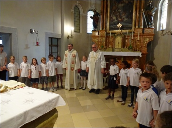 Sehr festlich wurde diese Messe mit Liedern und Gebeten gefeiert. Die schönen Worte des Stadtpfarrers gaben Kraft für das bevorstehende Schuljahr.